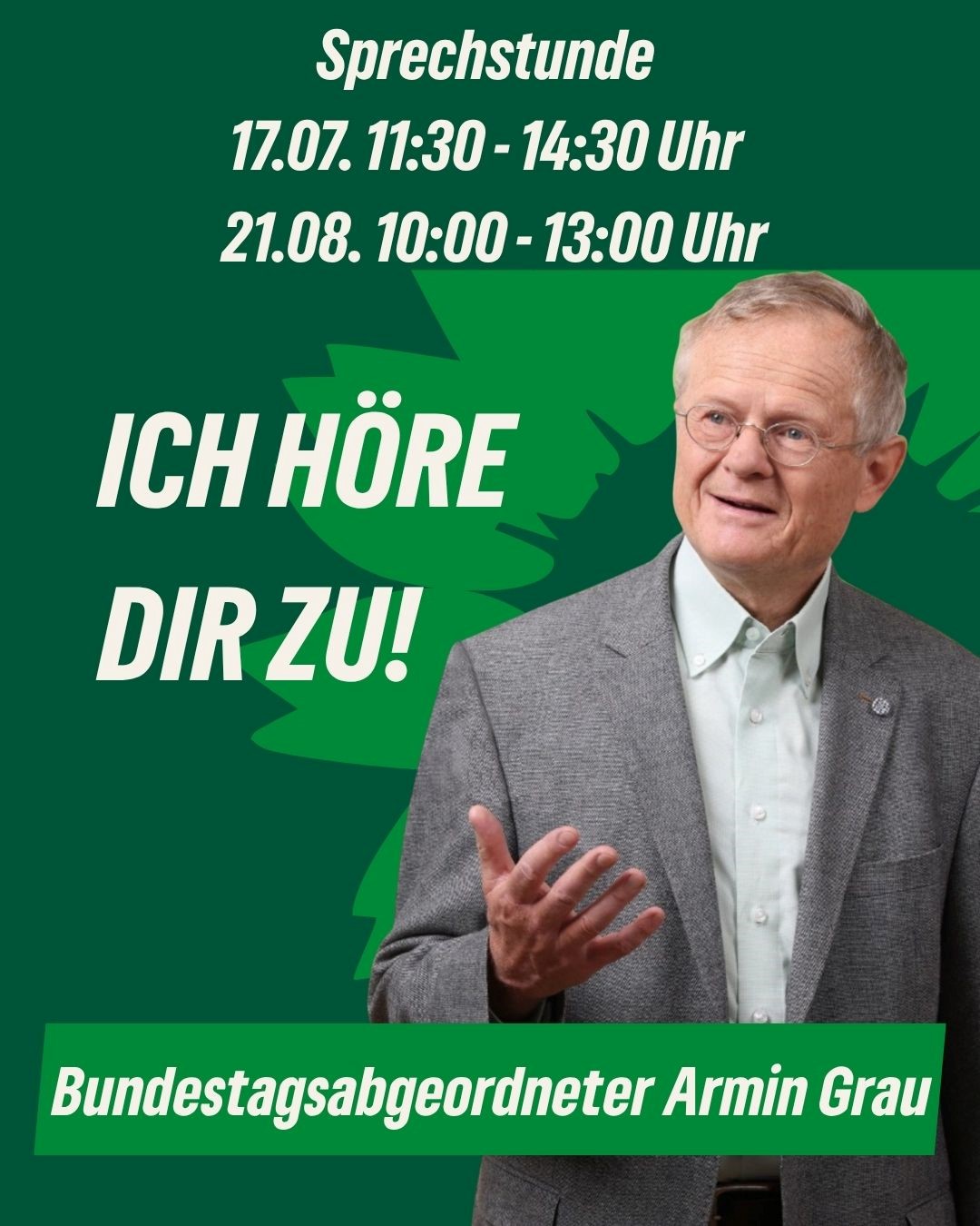 Das Wahlkreisbüro erreichen Sie unter der Telefonnummer 06236 5005123 oder per E-Mail an armin.grau.wk@bundestag.de.